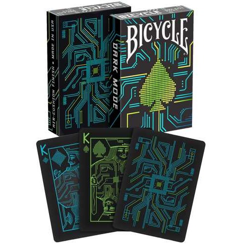 Pokerkaarten Dark Mode deck. Afmeting 88 x 63 mm, internationale pop. Twee normale indexes. Bicycle USA.